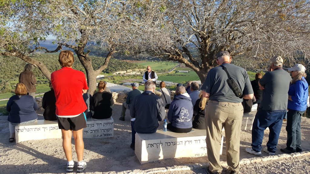 We then drove south to the Valley of Elah. We climbed to the top of Tel Azekah and had a fabulous view of the valley where David killed Goliath. We read 1 Samuel 17 and our bus leader Jim Showers, the executive director of The Friends of Israel Gospel Ministry, shared how David defeating Goliath was a display of God’s sovereignty. Saul was not fit to be king and there was great fear of Goliath among all of the Israelites. When David came to visit his brothers he wanted to know why the people were so afraid. David’s brothers wanted to dismiss him but we all know what happened next. Jim said that God choosing David to be the next king and David’s defeat of Goliath was God’s way of preparing the people to recognize the leader He was making of David. David had no weapons but he had God with him. This is a lesson for us. We don’t have to be great and mighty. We simply need to trust God for His sovereign plan in our lives.