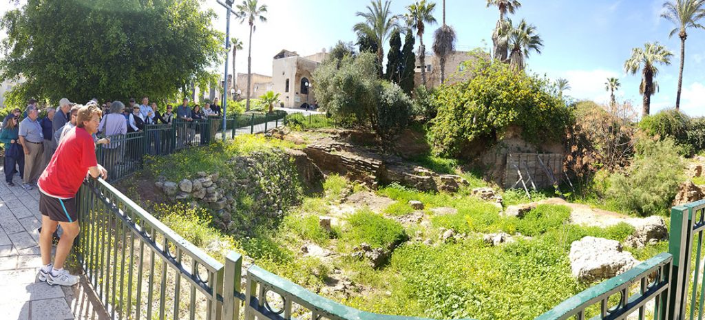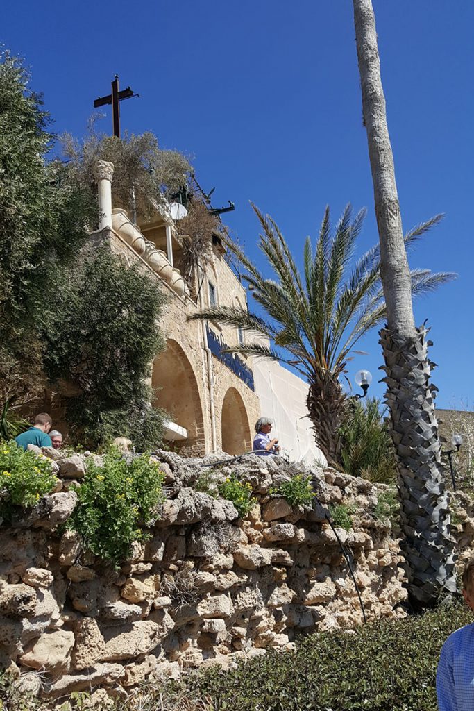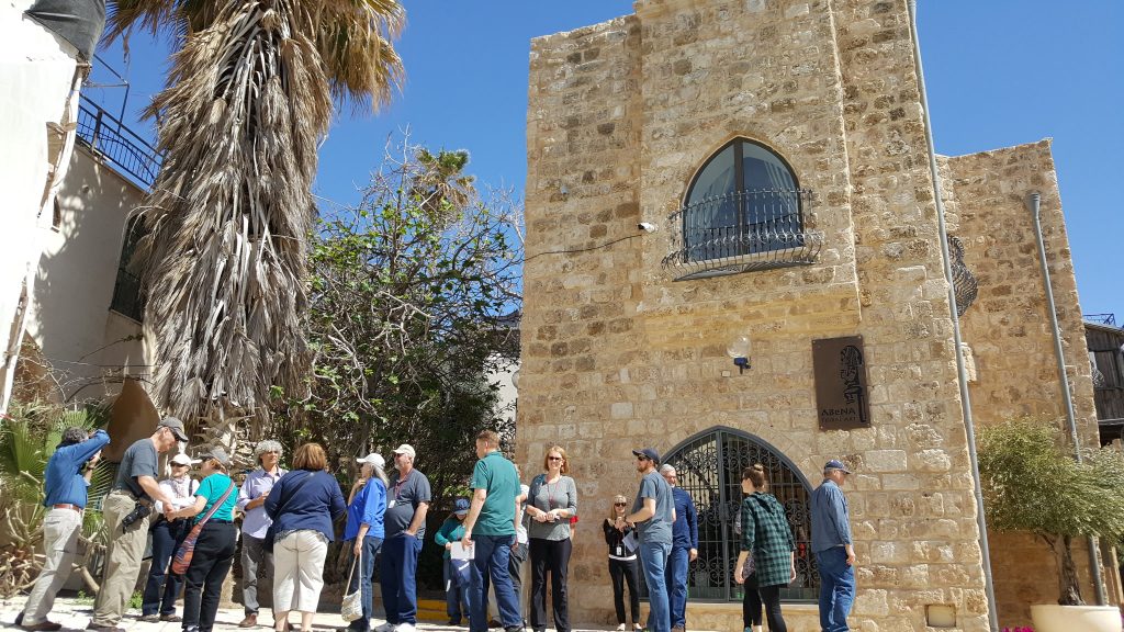 Once we were through customs and had our luggage, we hit the ground running and began touring right away. We can sleep when we get home right? Our first stop was the ancient port town of Joppa (today known as Jaffa). Our tour guide shared the importance of having a seaport for ancient Israel. This is where goods came in and out of the land. There is a lot of Biblical history in this small town. Here, Jonah ran from God when He commanded him to go to Nineveh. In Jonah’s fleeing he was treating God like a false god—as if God were only a local god as the pagans believed. Jonah actually thought he could get away from God—the true God who is all powerful and all knowing. Seems silly but I know we all treat God this way sometimes as believers too. This is also where Solomon’s cedars of Lebanon came for the temple. And where Peter was visiting Simon the Tanner and received the vision of previous unclean animals being clean to eat. That was the beginning of taking the Gospel to the Gentiles.