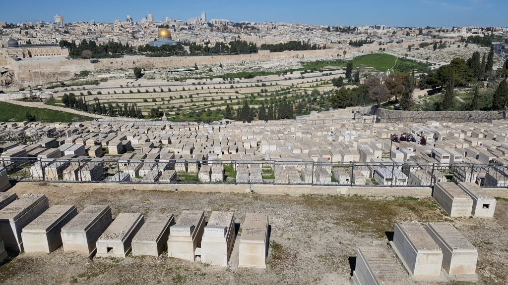 This morning we made our way from the quiet Jewish community on Shabbat (the Sabbath) to the craziness of the Mount of Olives. This is the most popular Jewish cemetery in all of the world and tourist from all over were there. Why is this the most popular? Because it’s many people’s desire to be in Jerusalem at the resurrection. In fact, Jewish people in other lands are buried with their feet towards Jerusalem. Many Biblical events occurred here. This is where Jesus wept over Jerusalem, began His triumphal entry into Jerusalem, gave The Olivet Discourse, ascended to heaven after His resurrection and this is the place where He will return.