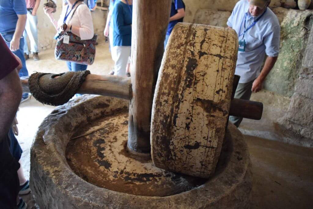 Our next stop was a drive up into Nazareth https://www.bibleplaces.com/nazareth/ to the Nazareth Village. Here we had an incredible first century lunch of chicken, lentil soup, cabbage salad, a bread similar to na'an or pita, olives, hummus, apples and fig honey. We explored the replica village complete with shepherds in costume, a donkey, sheep, and an olive press. Much of the food is grown right there on the property. While not everyone liked every part of the meal, I think most were happy that it was something besides falafel. (I believe falafel is an option again tomorrow.)