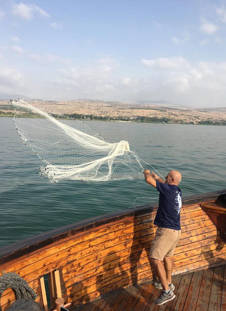 First thing this morning, we were out on the Sea of Galilee, just as those disciples, having fellowship, music, dancing to Hava Nagila and yes, even casting nets on both sides of the boat. We did not catch anything today, and Jesus did not welcome us to shore with a hot fish breakfast. As I watched a family on the sandy shore, it wasn't difficult to imagine our risen Lord waiting there for the disciples.