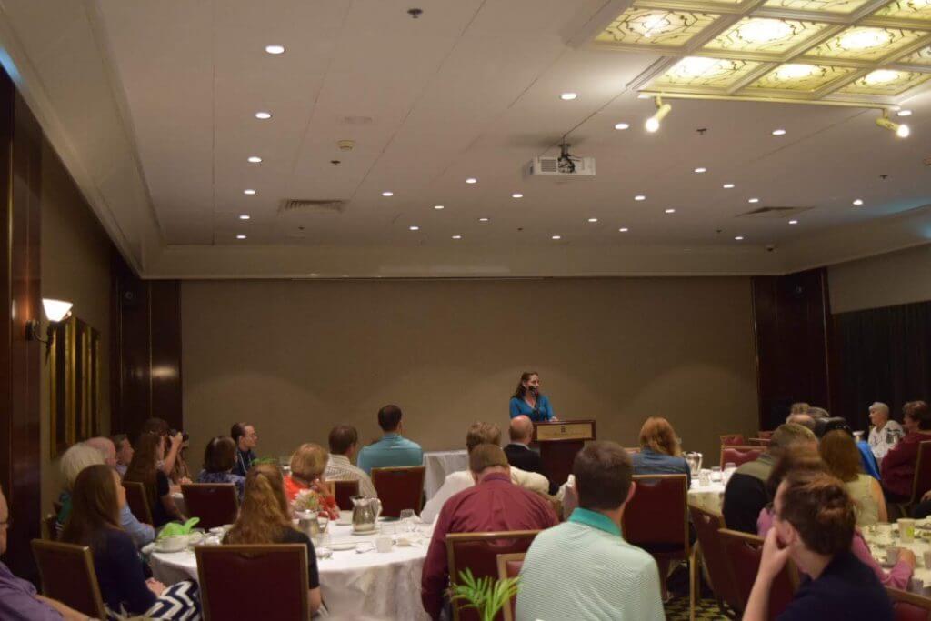 Our fabulous dinner was accompanied by an even more fabulous speaker, Rebekah Reinstein of the Christian Allies Caucus. She gave a passionate speech about Christian support for Israel, and an overview of what her and her husband Josh do to promote truthful news about Israel through their Israel Now Network.