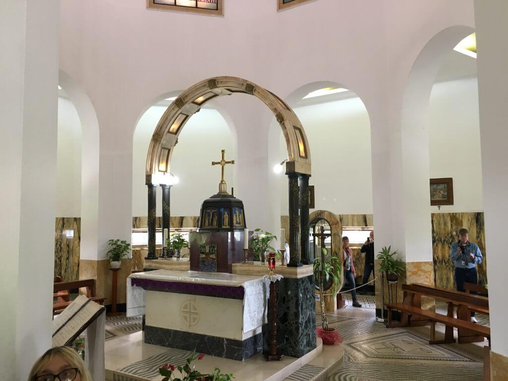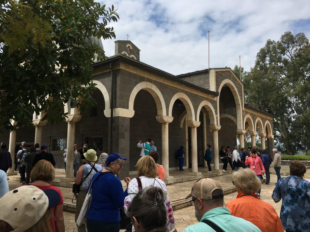 Our next stop was only a few minutes away at the Mount of Beatitudes. This is the possible location where Jesus preached the Sermon on the Mount. (Mt. 5-7) We read the beatitudes and given time to walk around on the grounds of the Church of the Beatitudes. There were places throughout the grounds to sit and reflect. https://www.bibleplaces.com/mtbeatitudes/