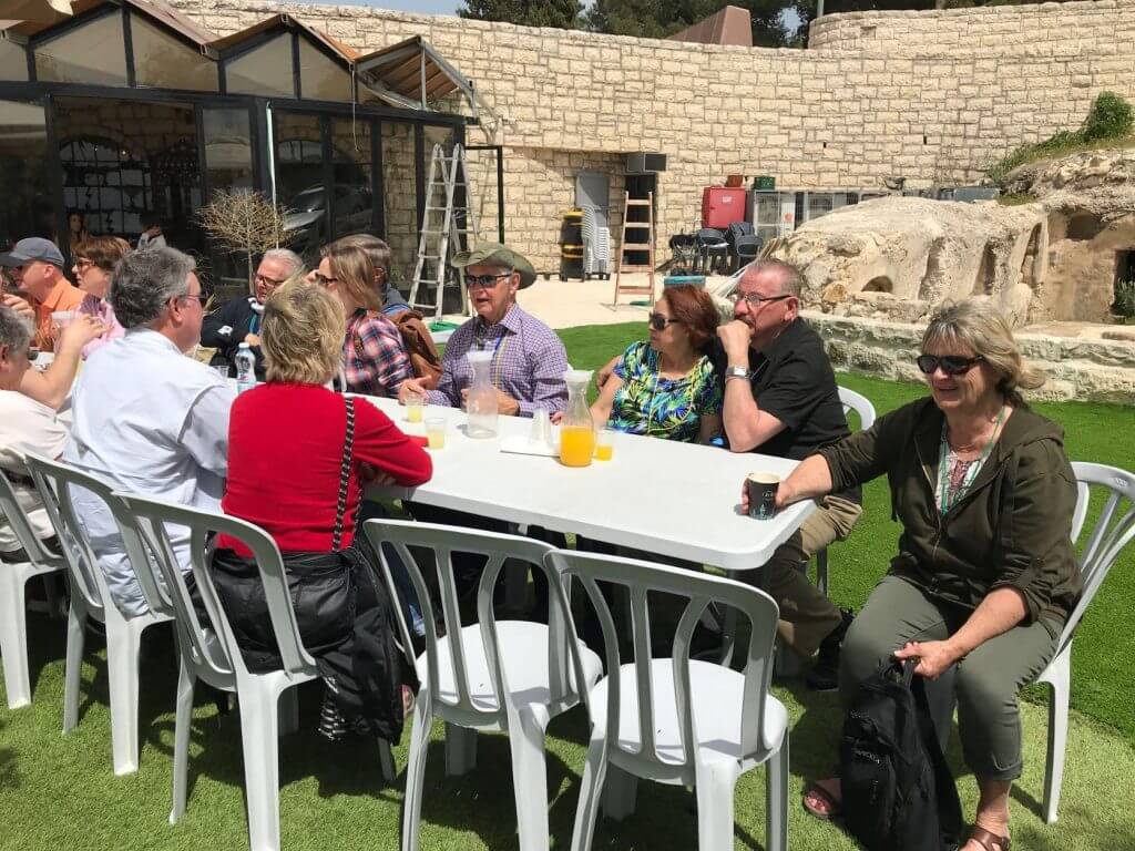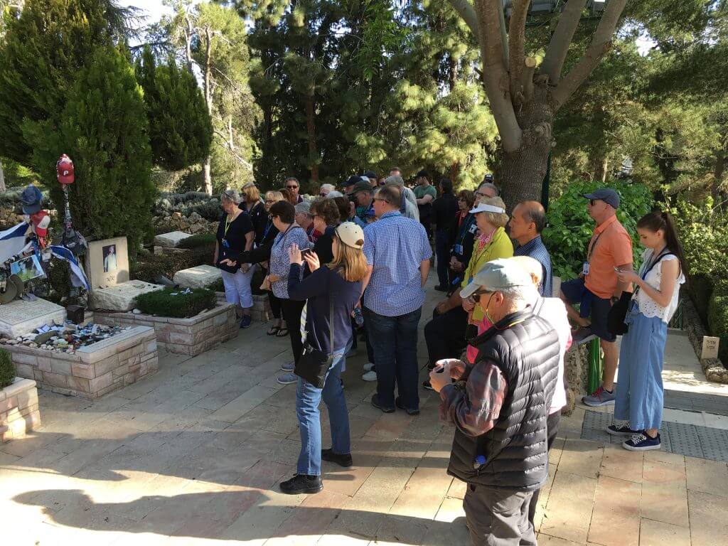 Today was an emotional day. We started with a stop at the military cemetery for a visit to the grave of Michael Levin. Michael was a lone soldier with the Israeli Defense Forces (IDF). A lone soldier is one who comes to Israel from another country to serve with the IDF. Michael is from the United States—the Philadelphia, PA area. It was a beautiful morning with birds chirping, sun shining, and a gentle breeze blowing. But, we couldn’t help but feel the weight of the moment as we stood facing graves of soldiers, Michael’s in particular.